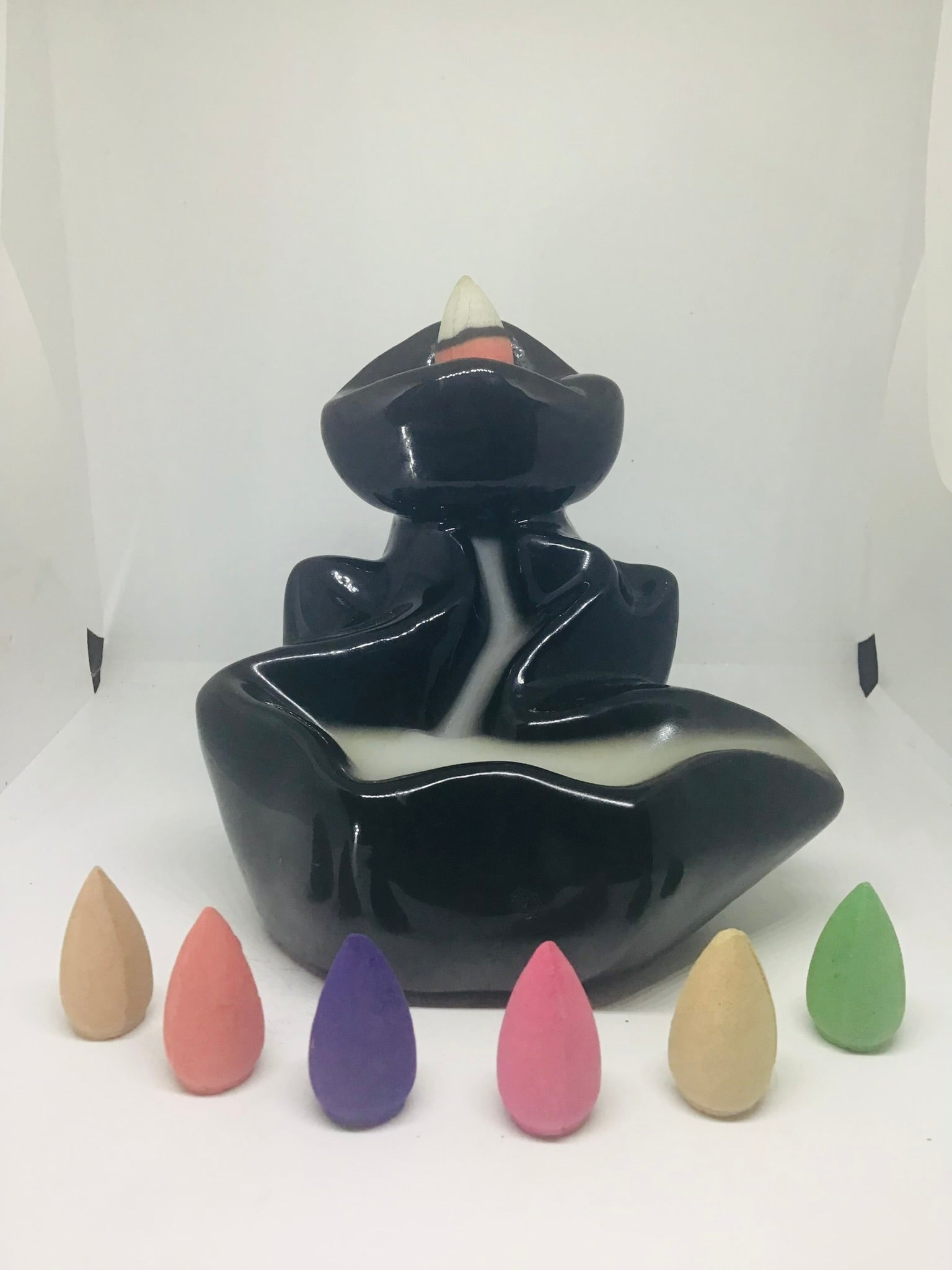 Backflow Burner with multi colored cones
